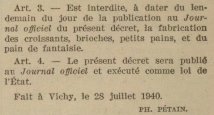 La Seconde Guerre mondiale bouleverse les habitudes. Un décret interdit la production des pains de fantaisie (dont le croissant) et fait disparaître la farine de gruau.